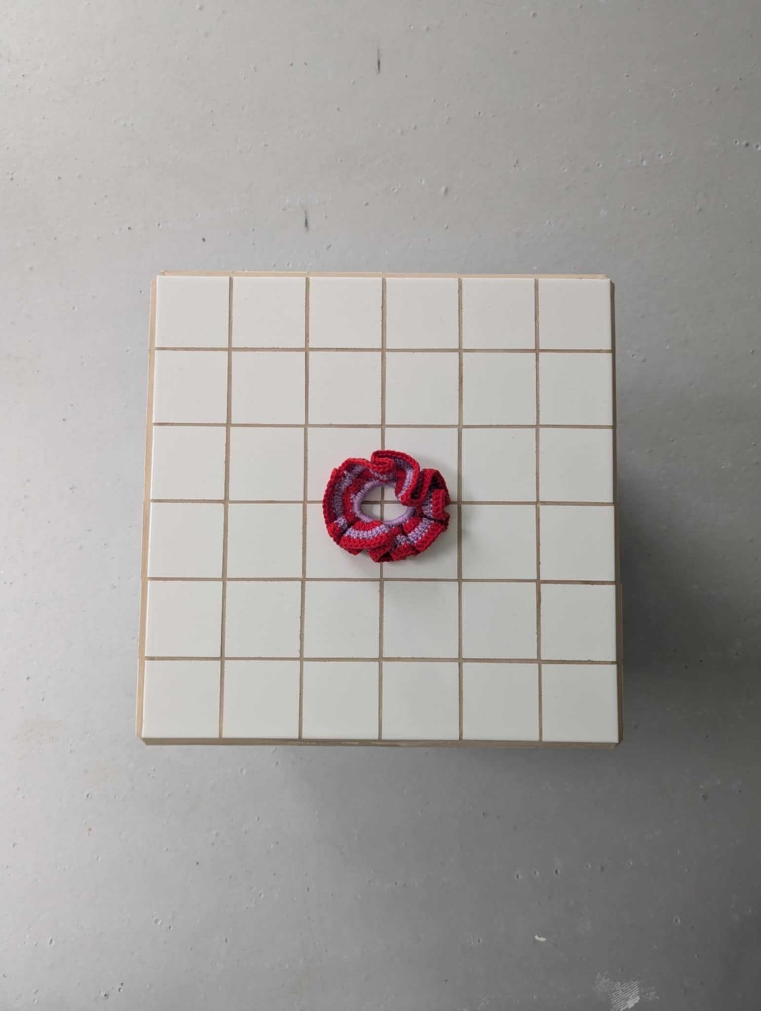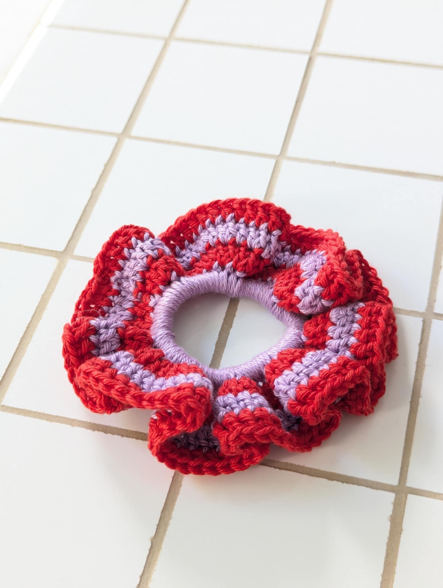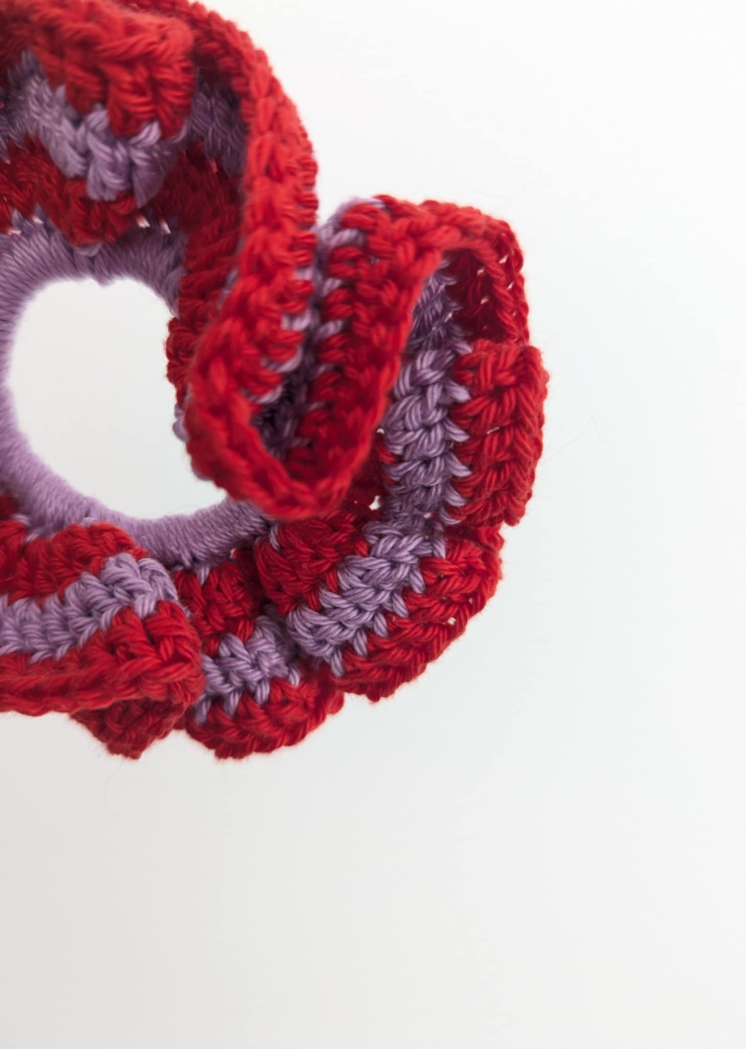 Aussi joli autour du poignet que dans les cheveux, ce chouchou est crocheté autour d'un élastique