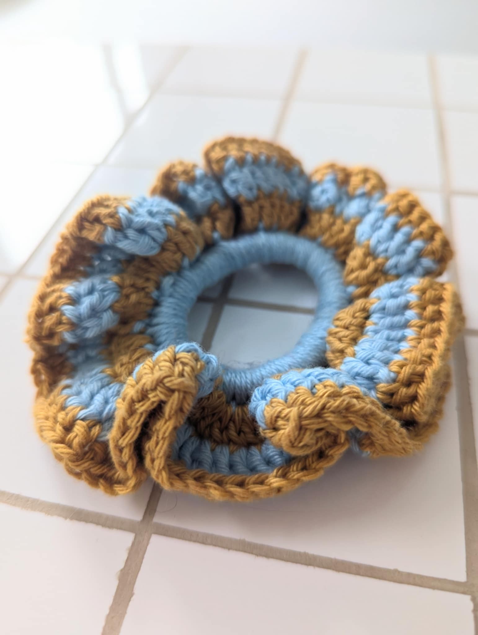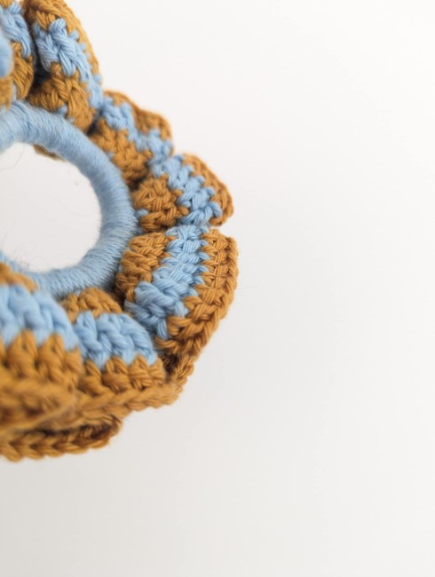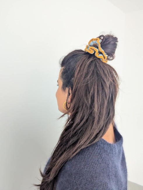 Aussi joli autour du poignet que dans les cheveux, ce chouchou est crocheté autour d'un élastique