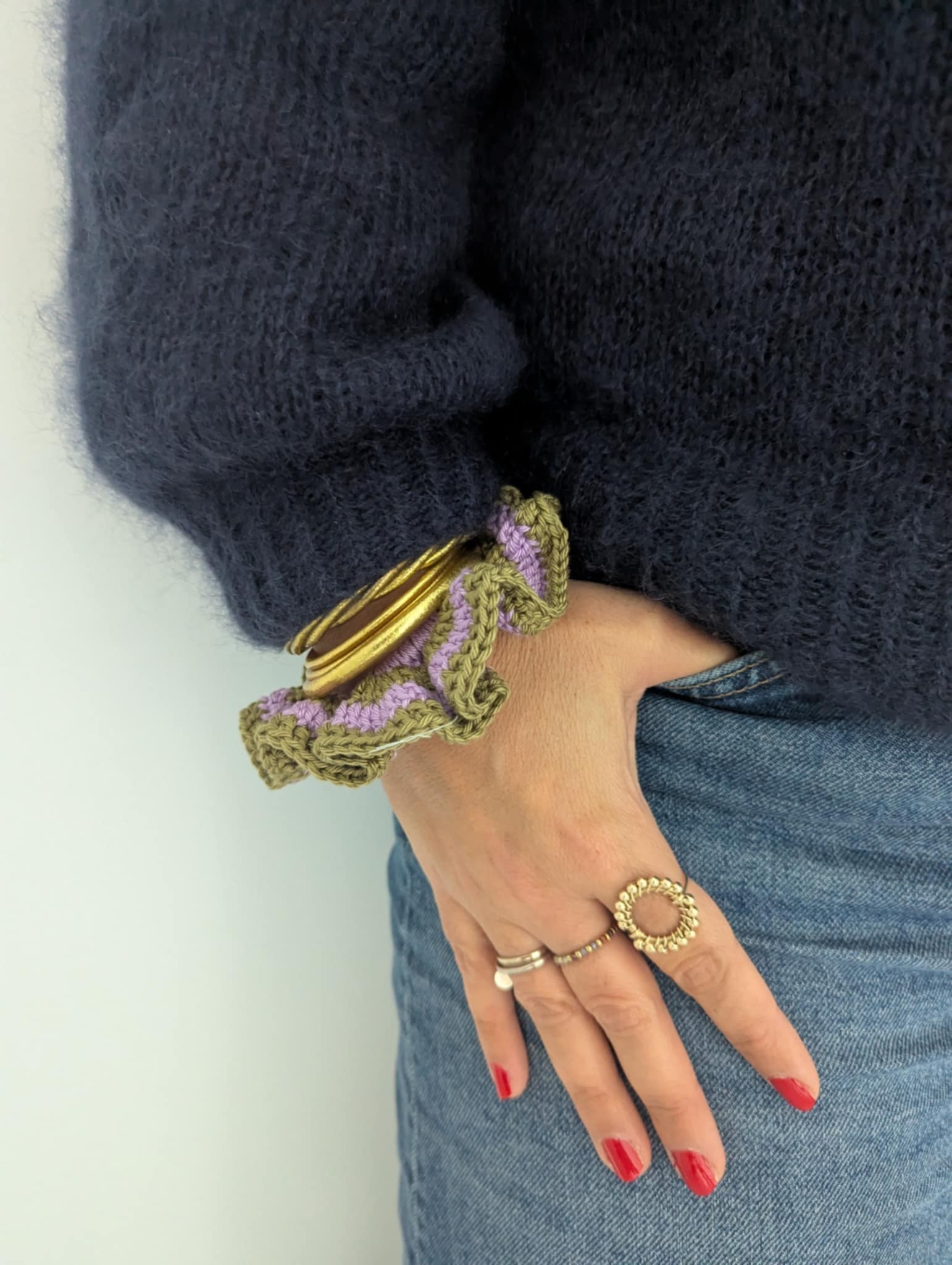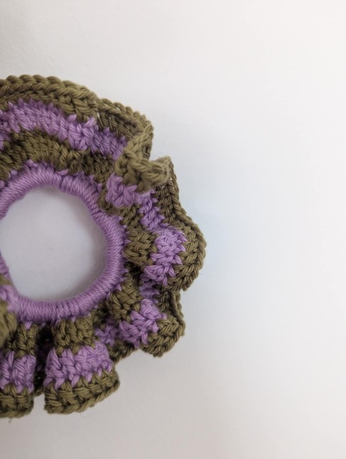 Aussi joli autour du poignet que dans les cheveux, ce chouchou est crocheté autour d'un élastique