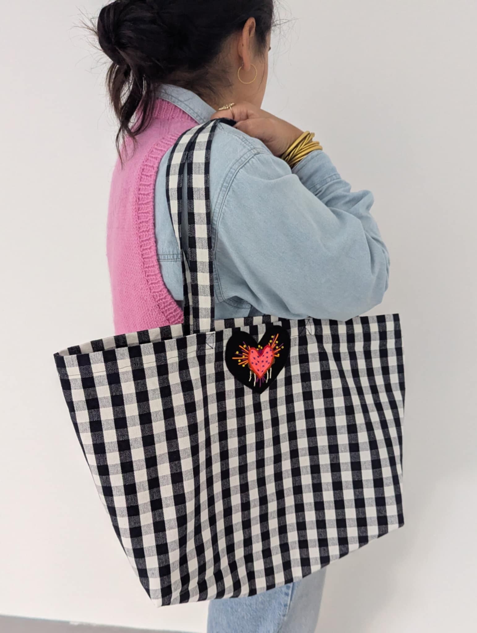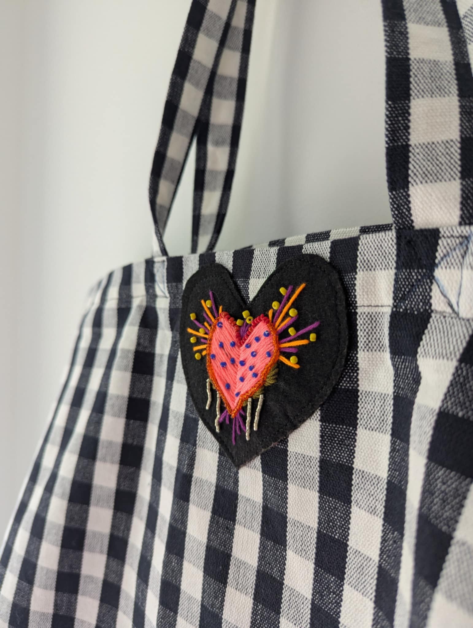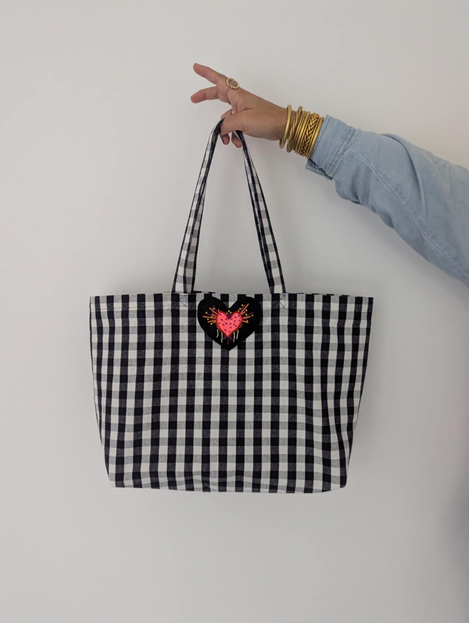 Et ce qui le rend unique est une jolie broderie en fil de coton et perles de rocaille, sur support en feutrine, cousu directement sur le cabas.