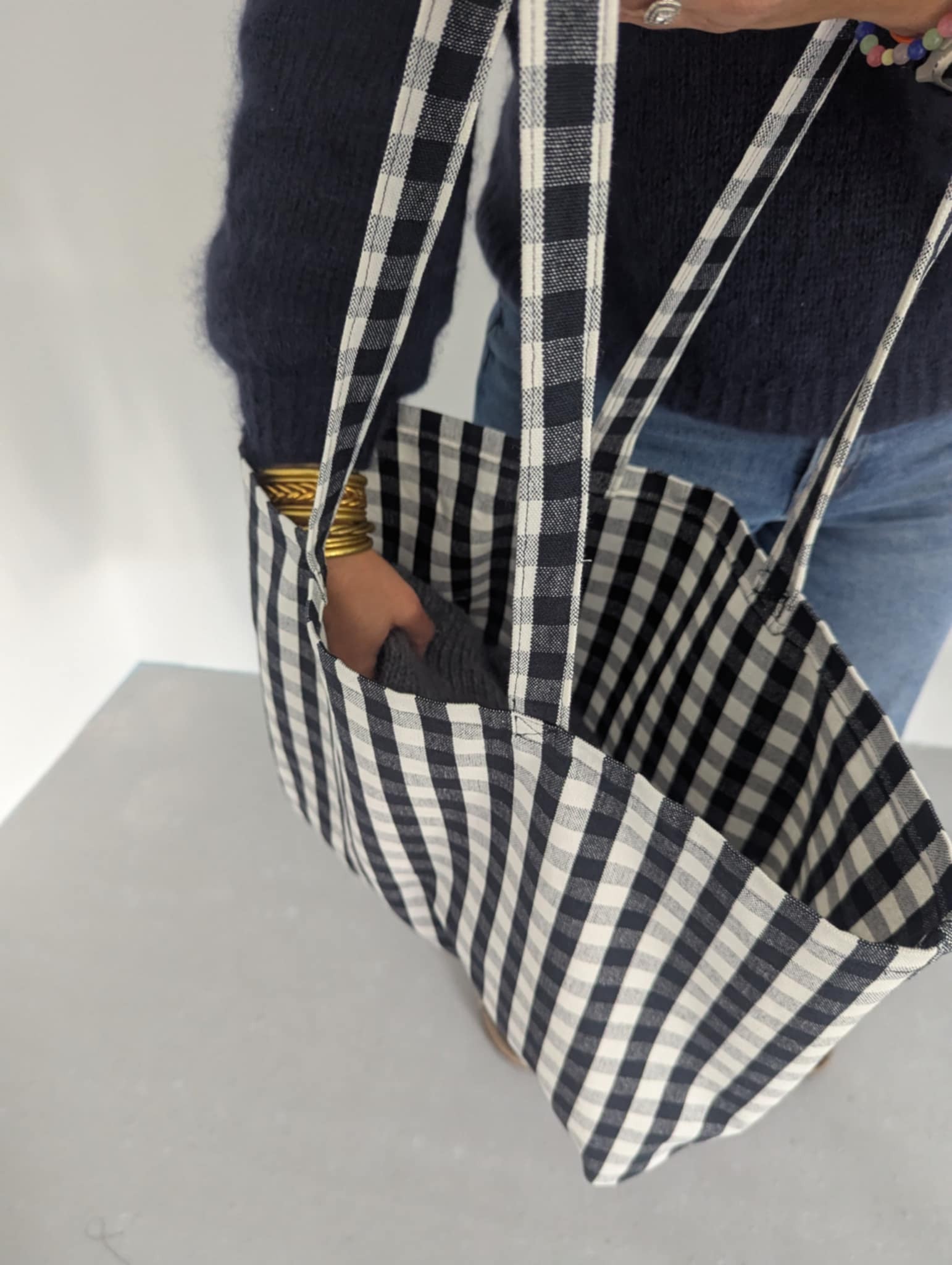 Hauteur anses 27 cm, ce qui permet de le porter à l'épaule.