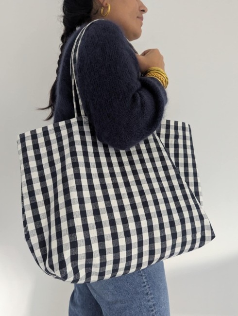 Sac cabas avec un grand compartiment en tissus coton épais. Il n'est pas doublé.