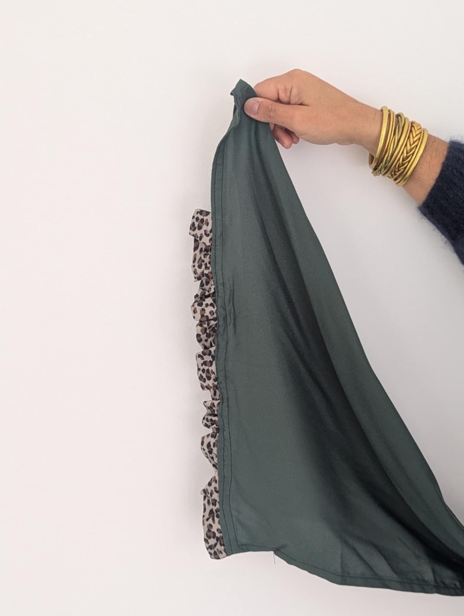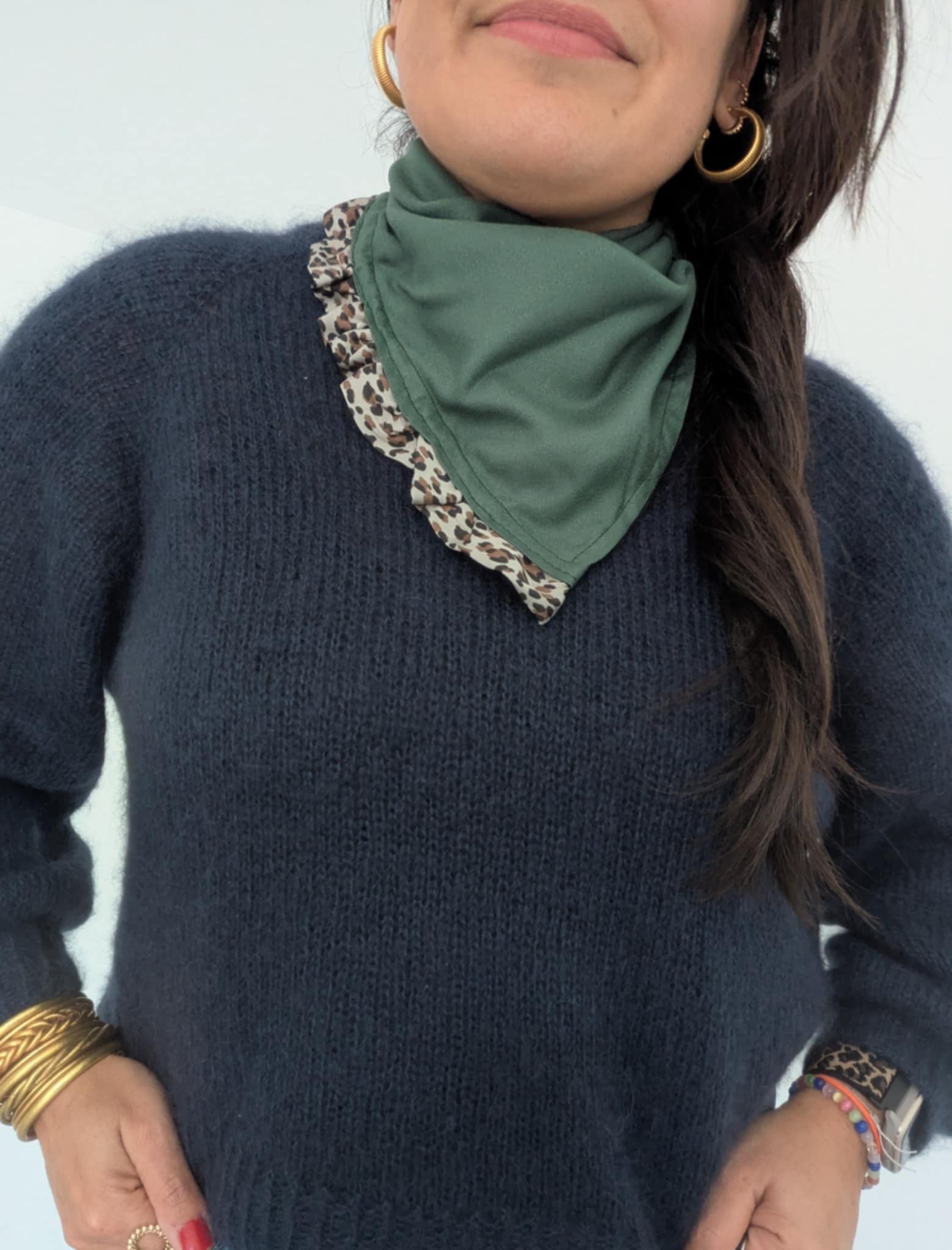 Bandana en crêpe de viscose vert et volant en twill de viscose et soie