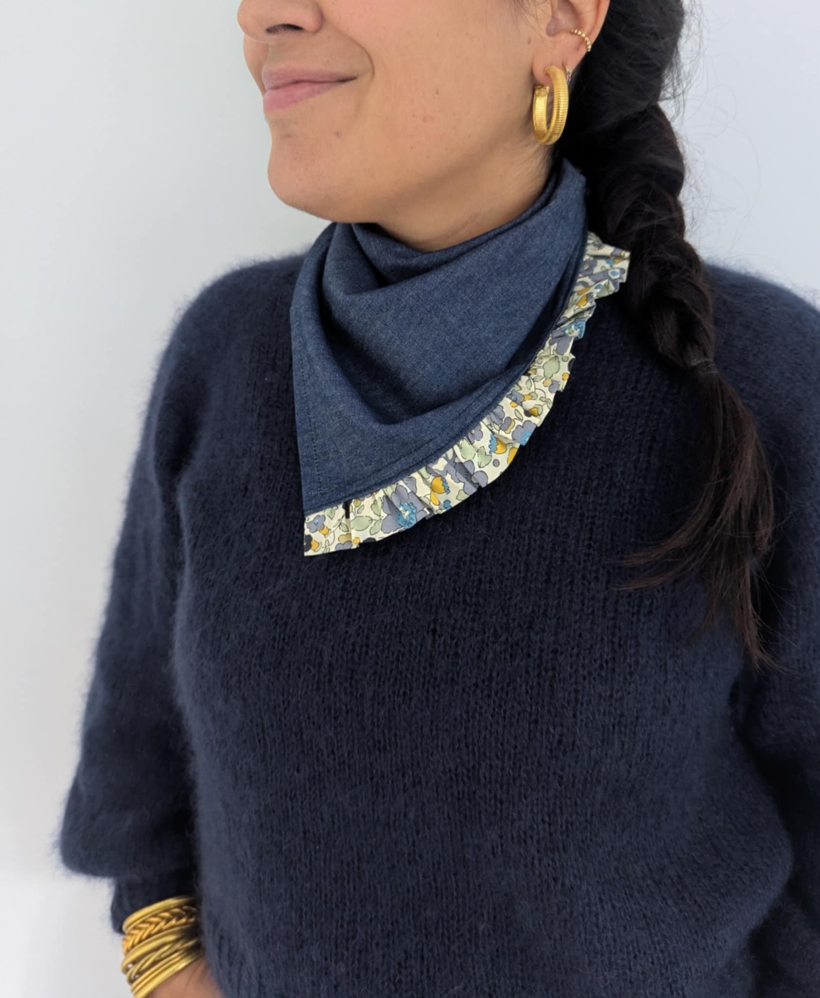 Bandana en coton chambray et volant en Liberty of London Betsy