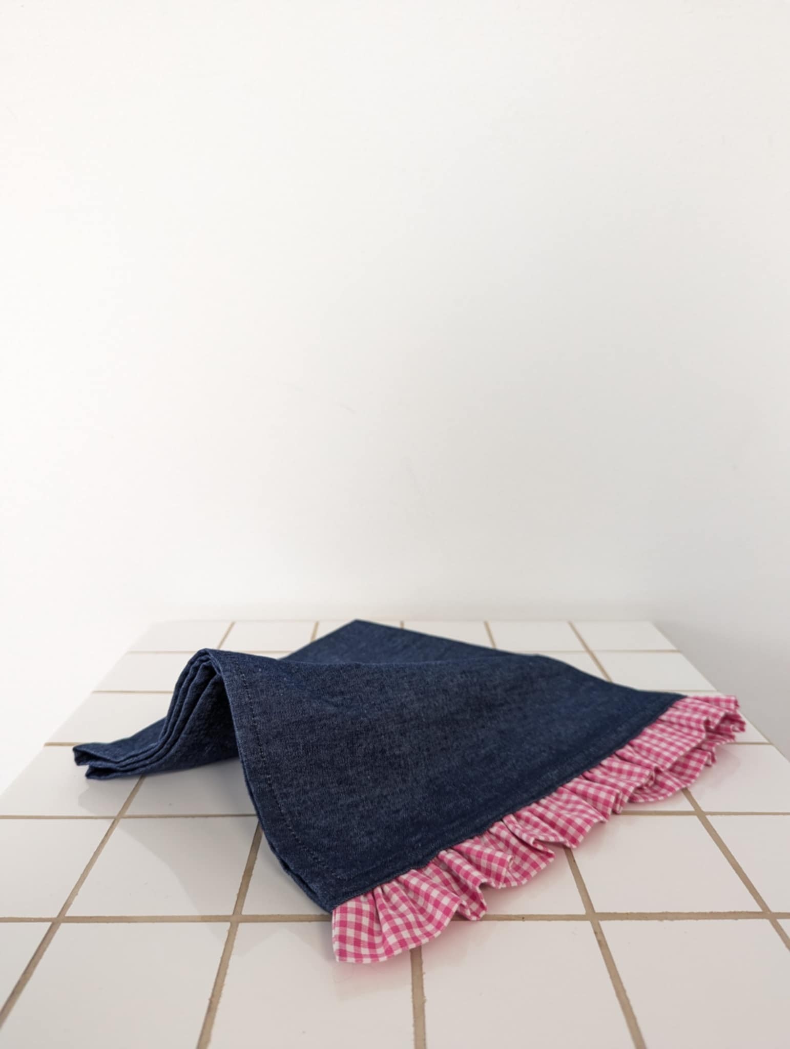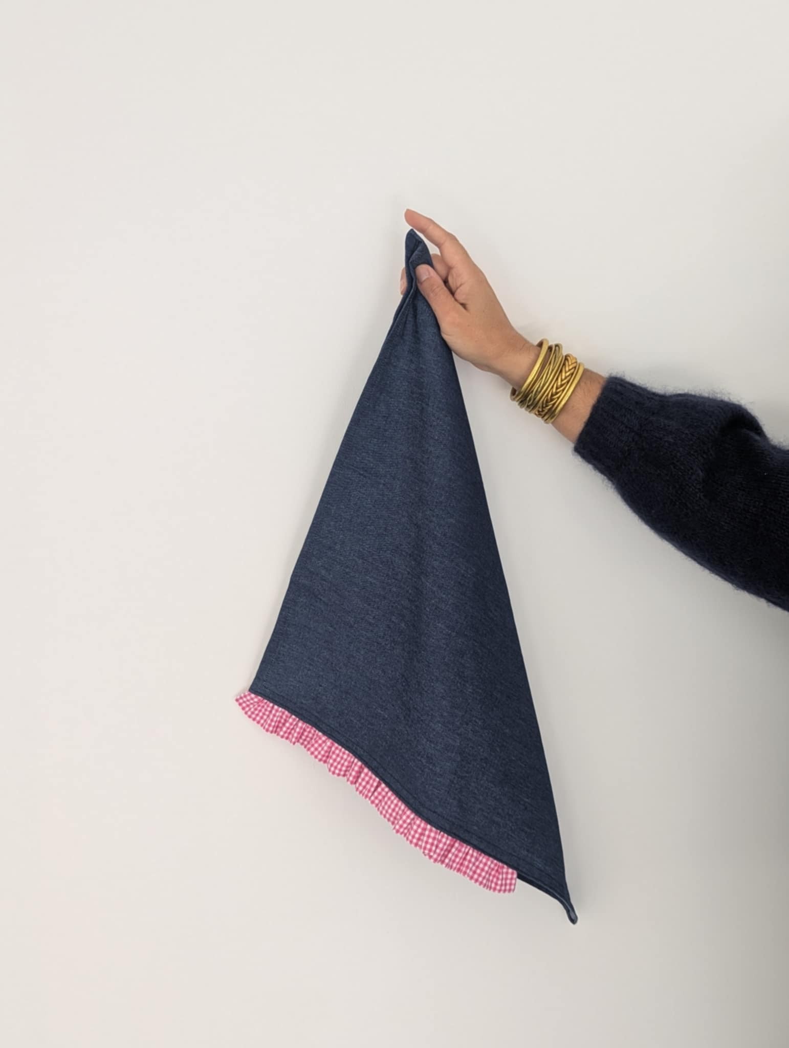 Bandana en coton chambray et volant en coton vichy rose et blanc