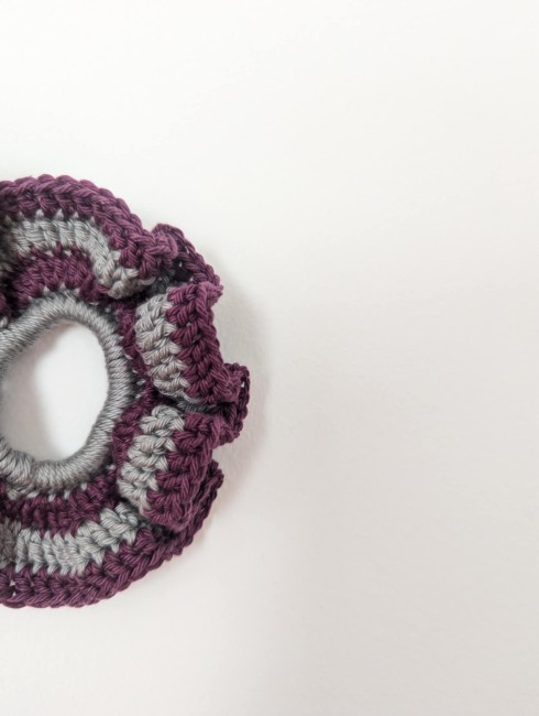 Aussi joli autour du poignet que dans les cheveux, ce chouchou est crocheté autour d'un élastique