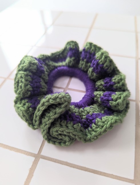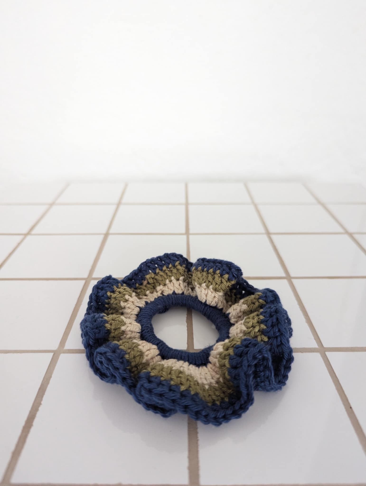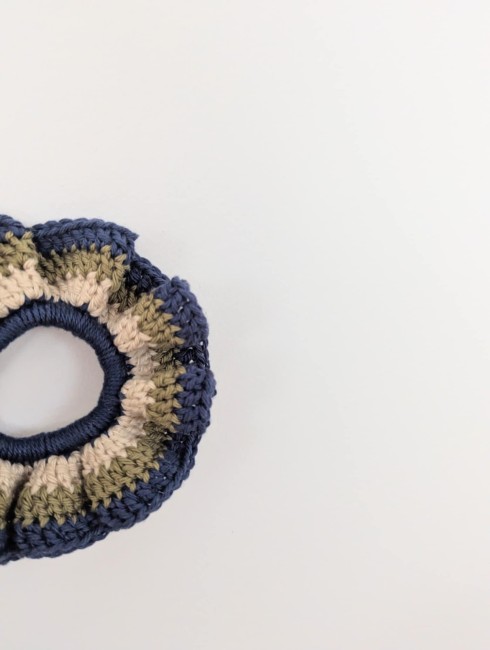Aussi joli autour du poignet que dans les cheveux, ce chouchou est crocheté autour d'un élastique