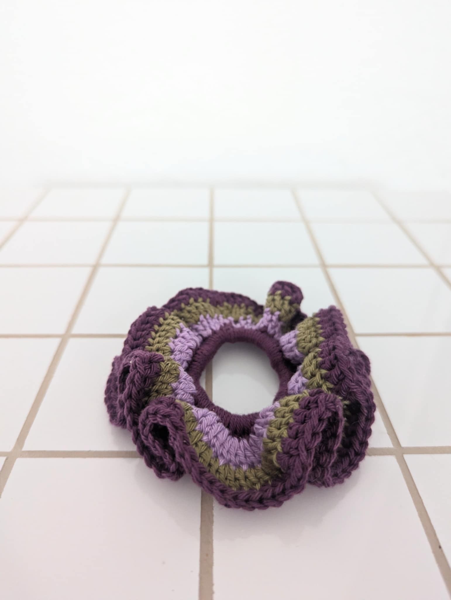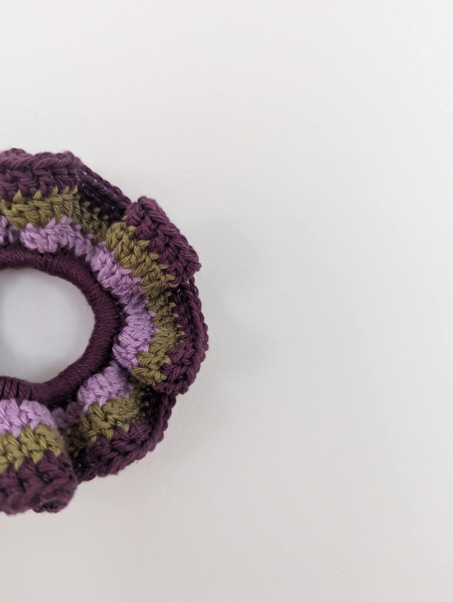 Aussi joli autour du poignet que dans les cheveux, ce chouchou est crocheté autour d'un élastique