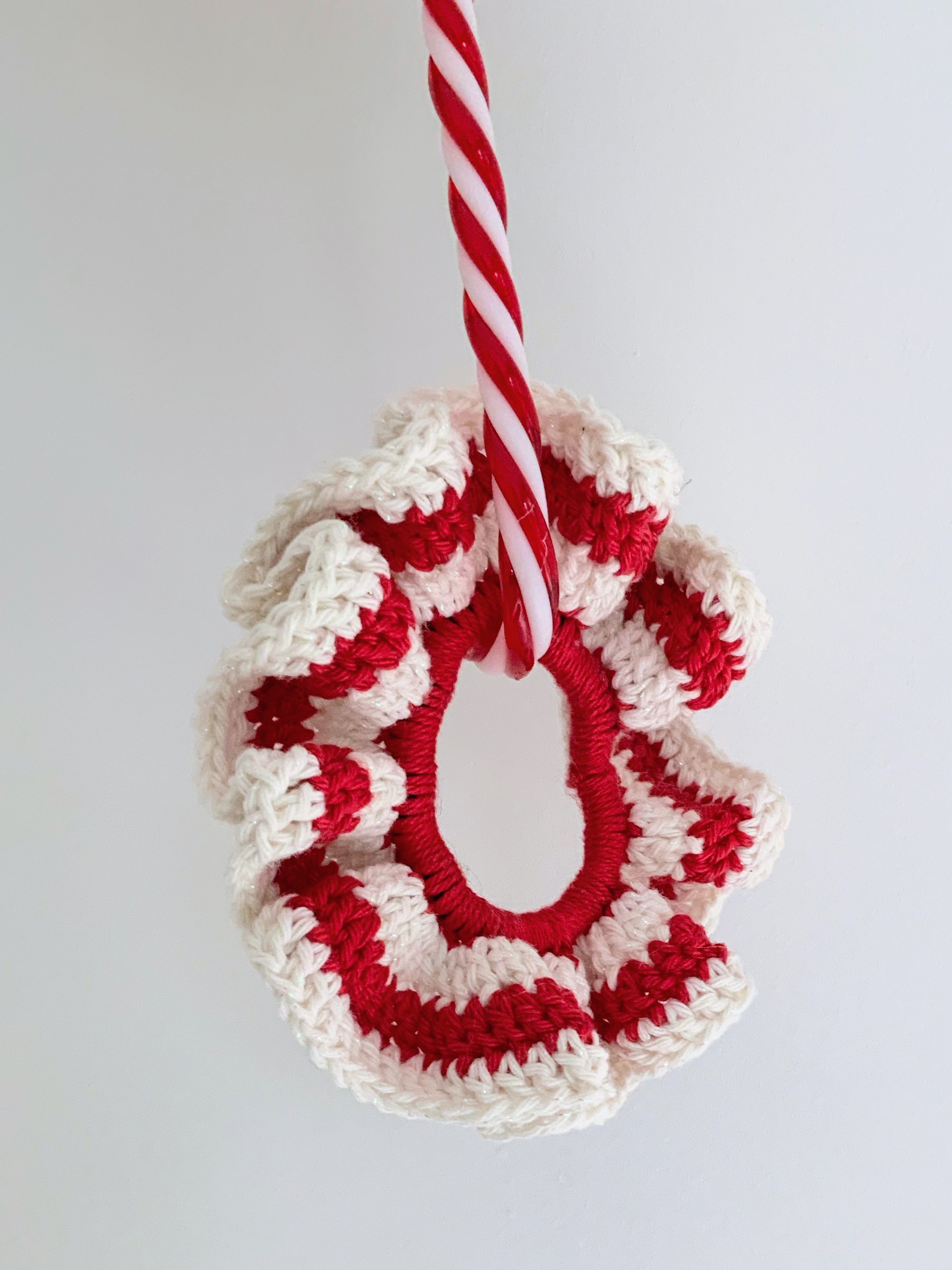 100% coton, crocheté à la main, rouge et blanc avec fil de lurex