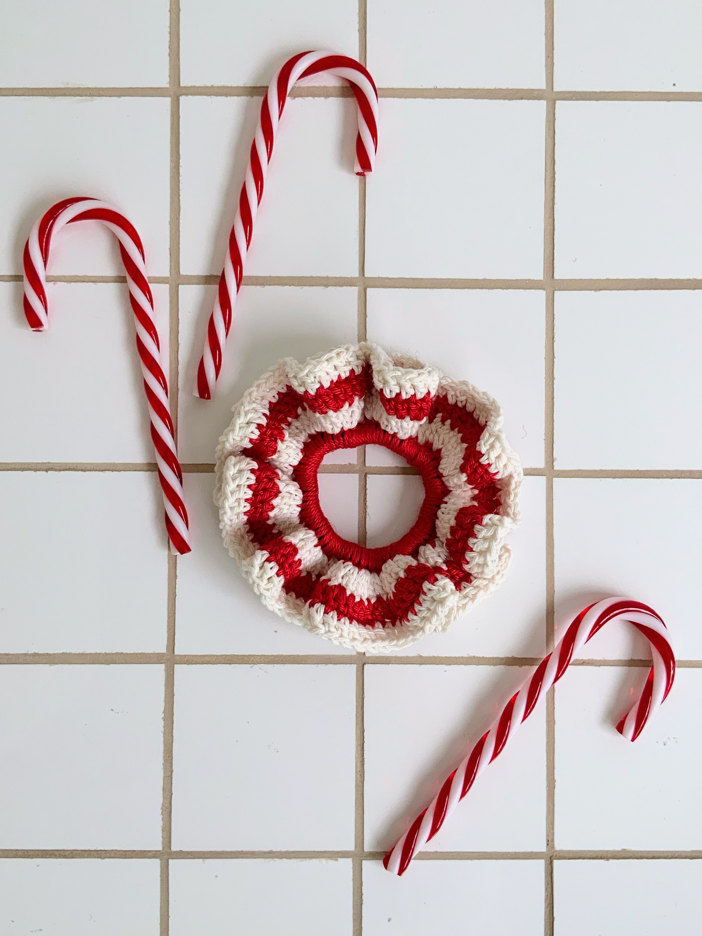Aussi joli autour du poignet que dans les cheveux, ce chouchou est crocheté autour d'un élastique, il illuminera votre tenue de fête