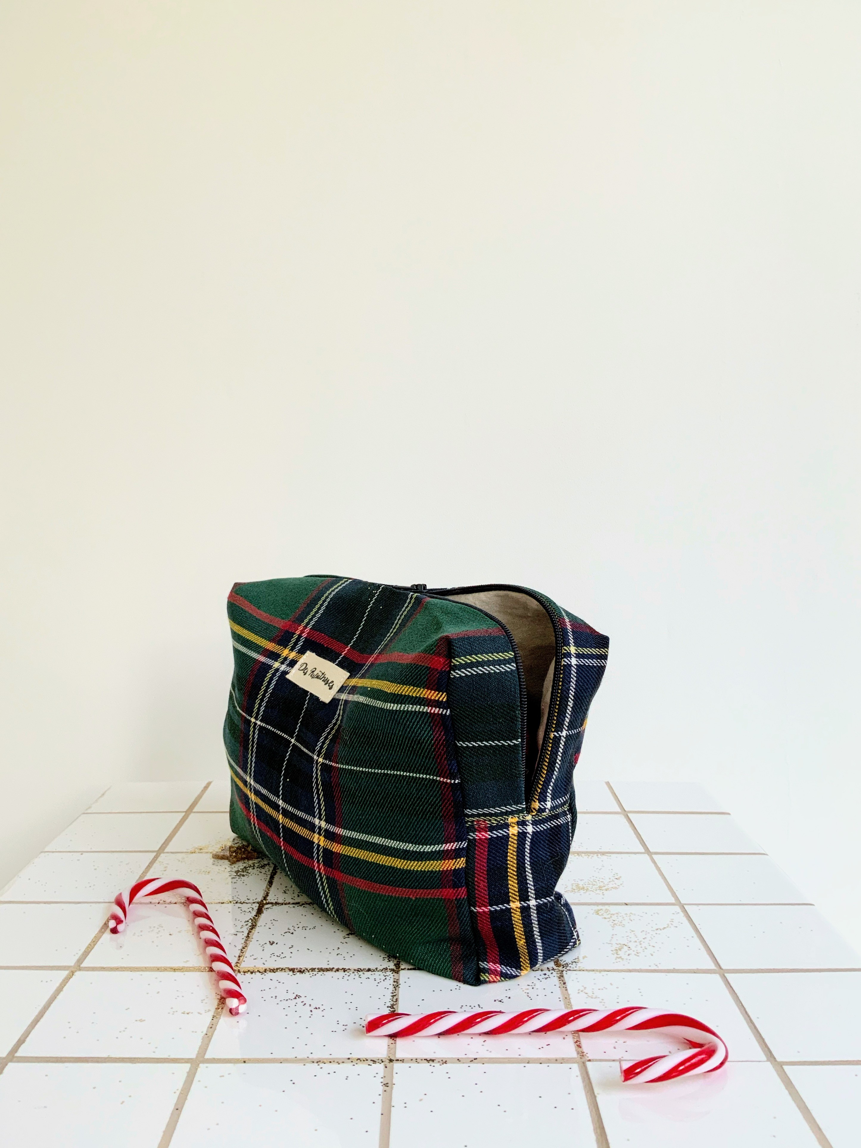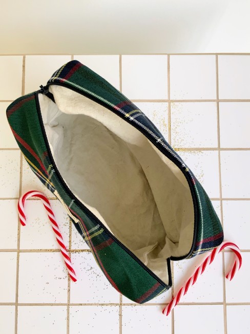 Pochette en tissus 100% coton écossais, fermeture bleu marine